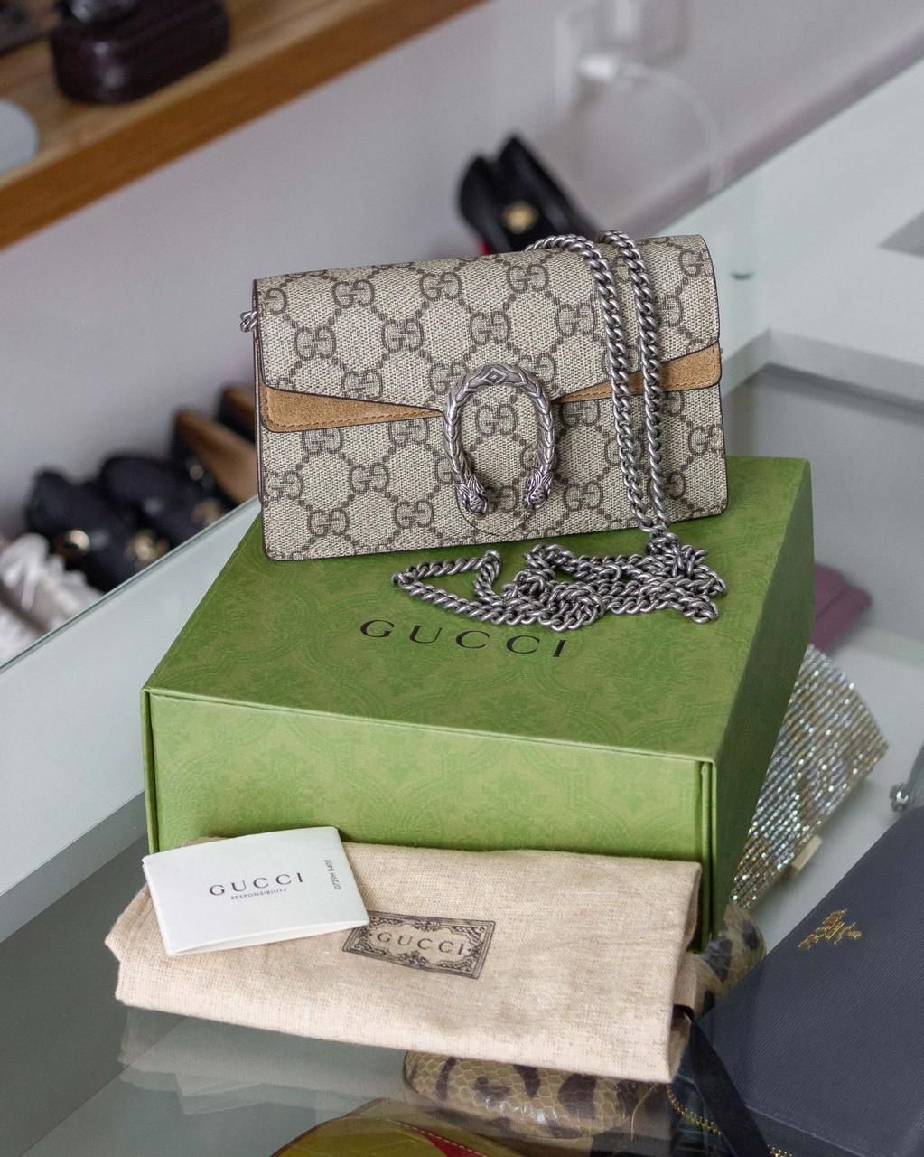 A Gucci Dionysus é um dos modelos mais icônicos da maison italiana. Inspirada no deus grego do vinho e da celebração, a bolsa se destaca pela fusão entre tradição e ousadia, trazendo uma estética poderosa que se tornou símbolo da Gucci contemporânea.