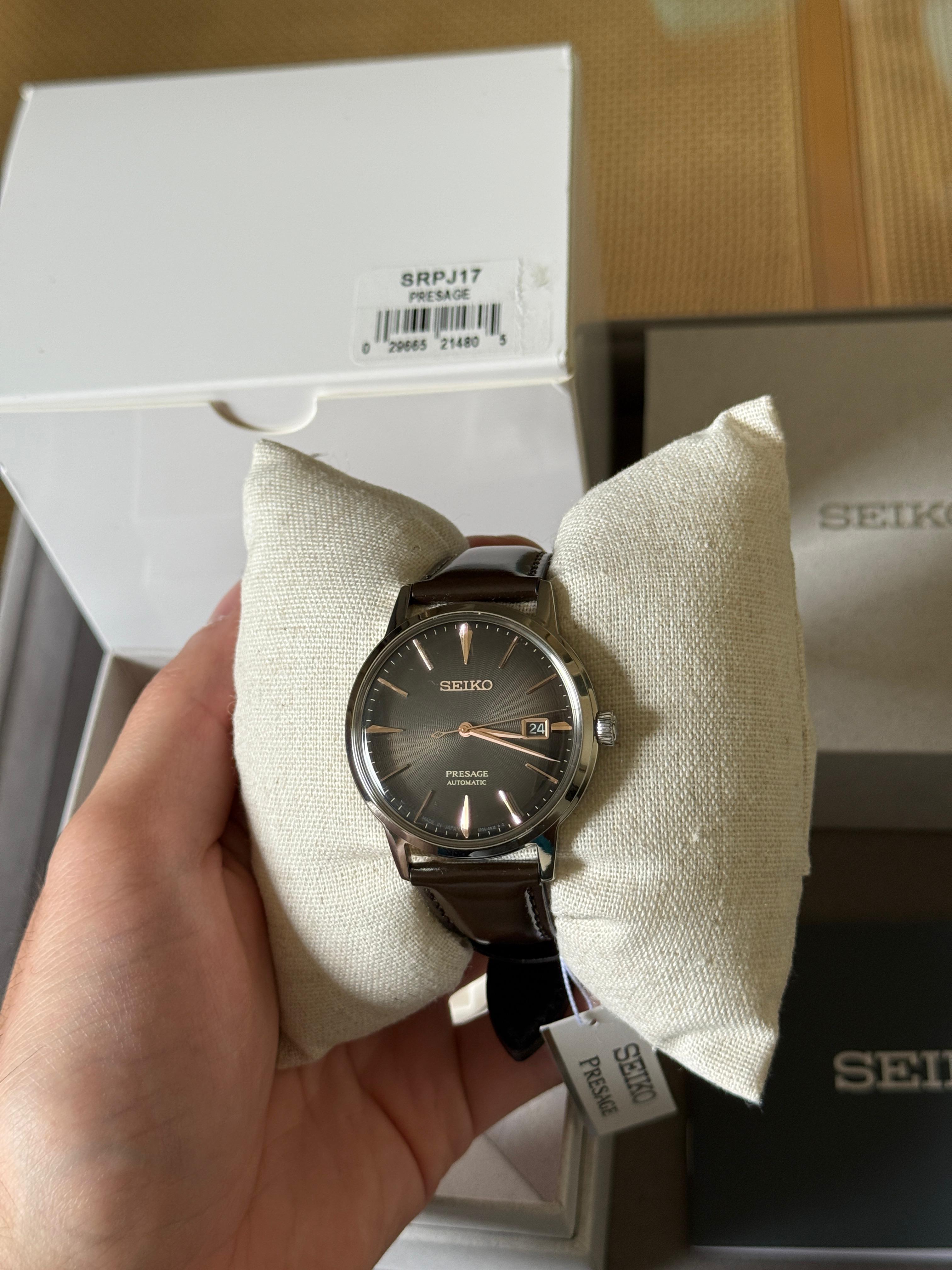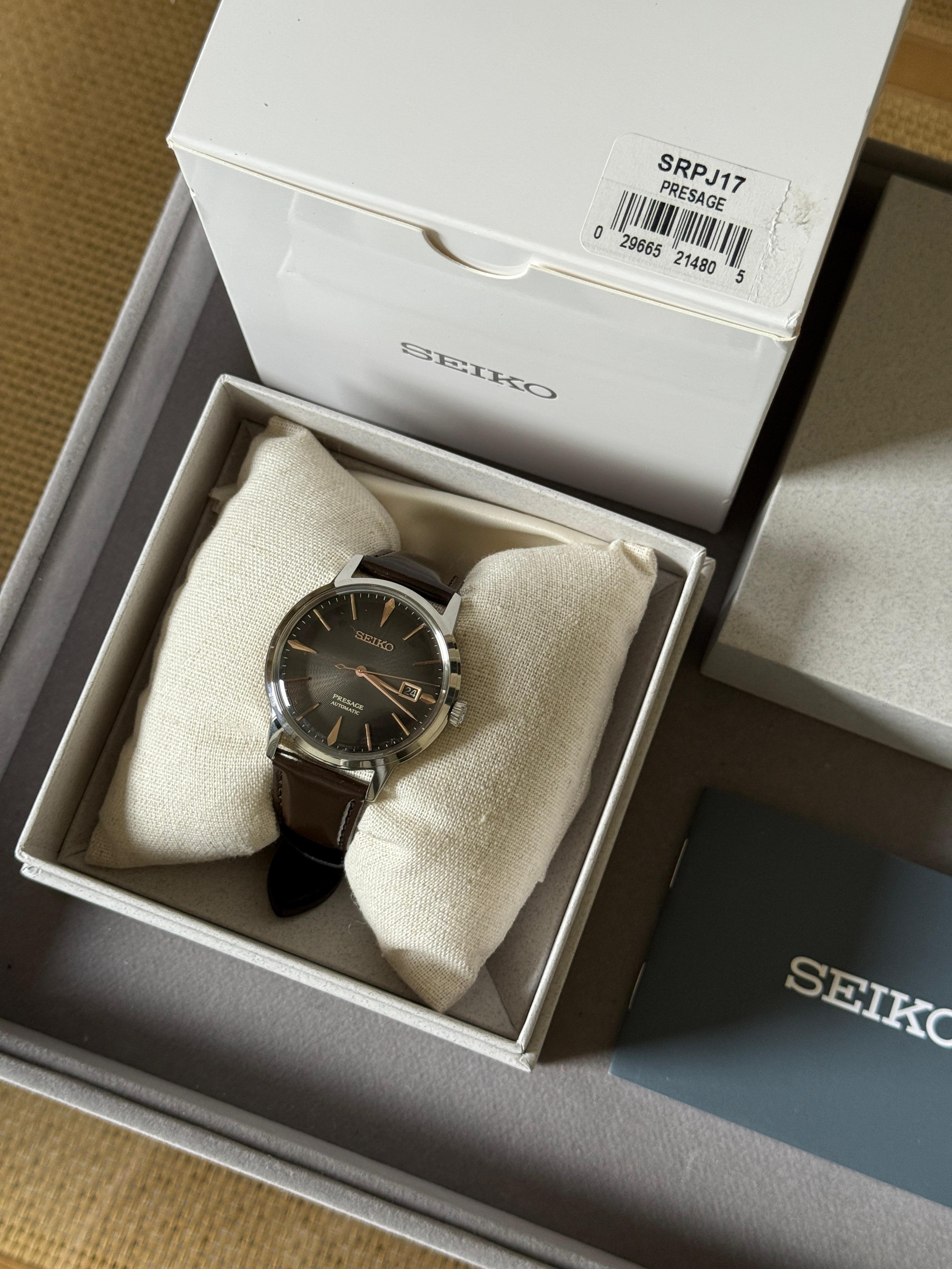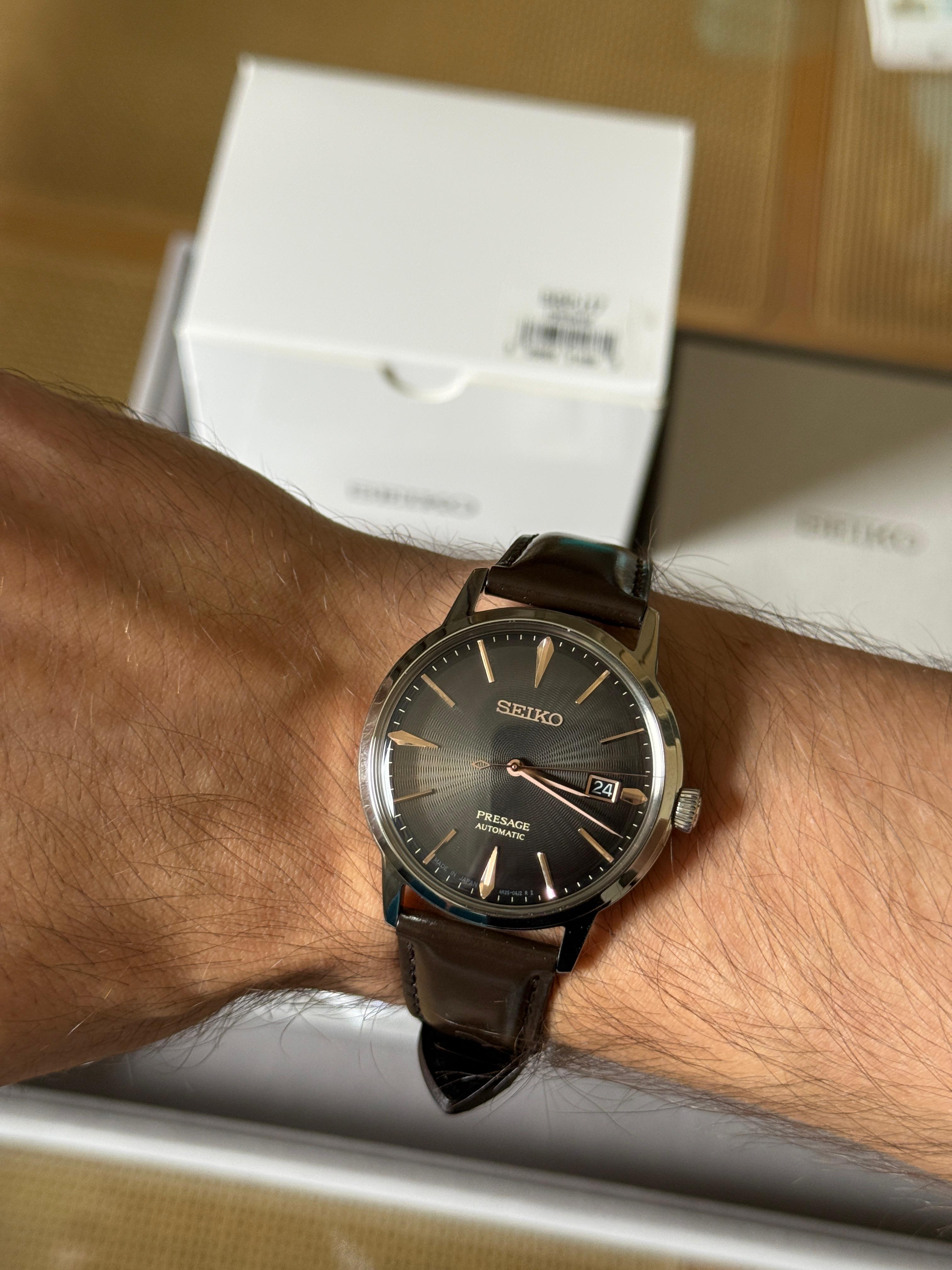 O Seiko Presage “The Irish Coffee” é um relógio que traduz a essência da linha Cocktail Time, inspirada em drinks icônicos. Seu mostrador marrom profundo com reflexos sofisticados remete ao clássico Irish Coffee, unindo tradição relojoeira e estética refinada.