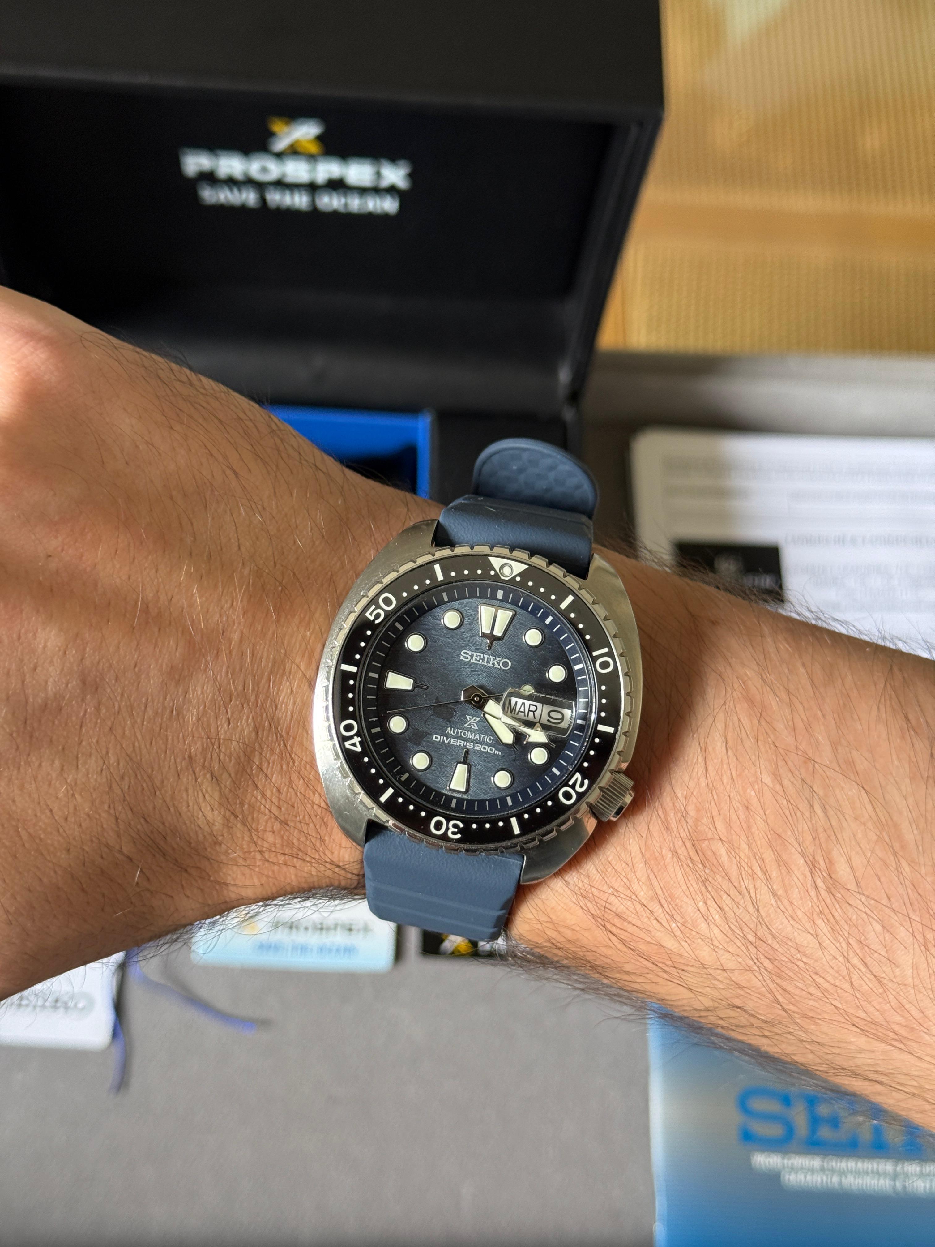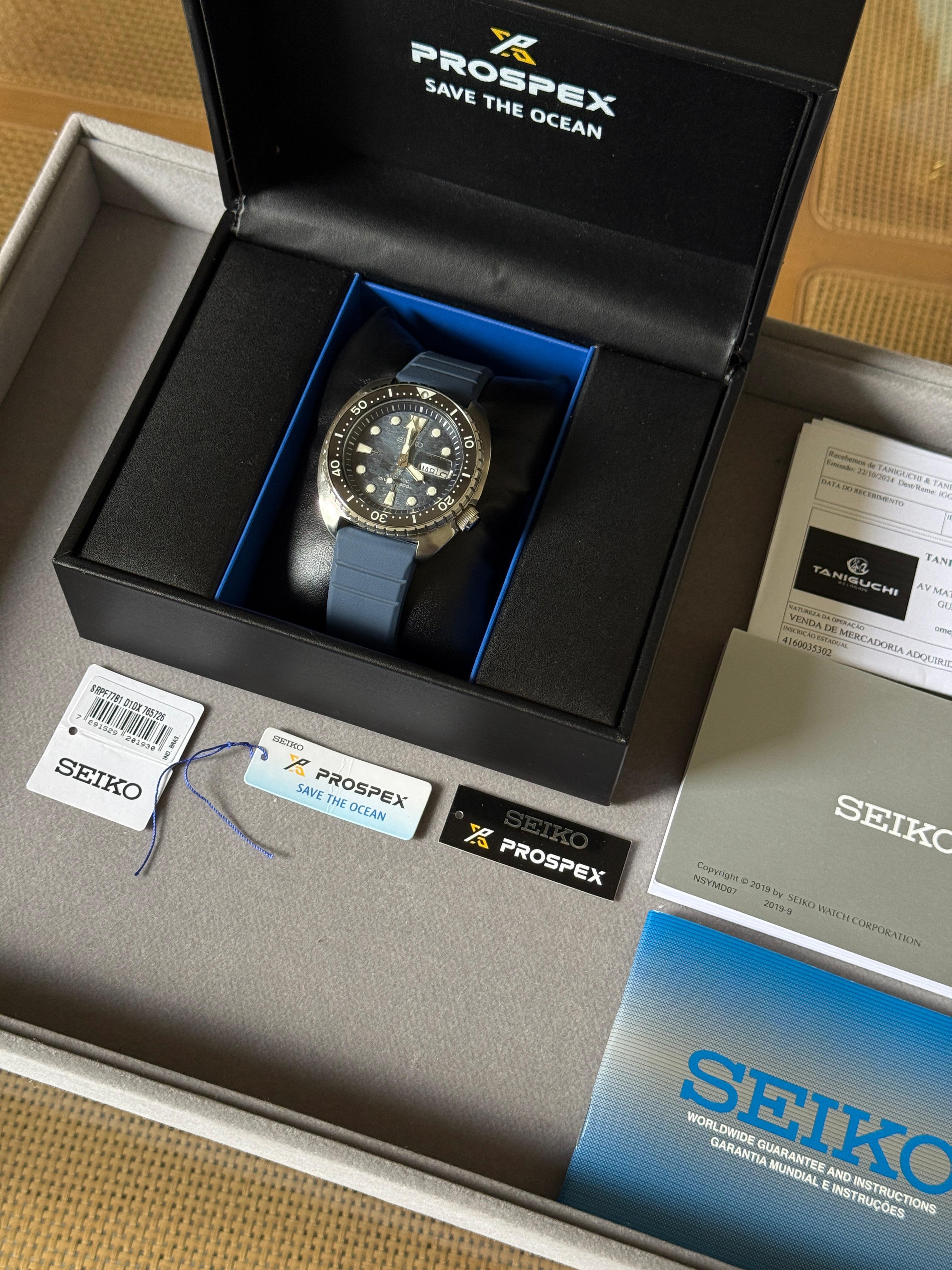 O Seiko Prospex King Turtle Dark Manta Ray Ref. SRPF77 é mais que um diver: é uma homenagem ao oceano e à vida marinha. Seu mostrador único com estampas de arraias-manta traduz a profundidade e a beleza dos mares em um design robusto e sofisticado.